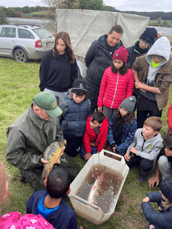 Děti si mohly zblízka prohlédnout různé druhy ryb – od kapra přes amura až po sumce či štiku. Dozvěděly se, jak rybáři určují jejich stáří, jak se pozná zdravá ryba a proč je důležité, aby se rybníky pravidelně lovily a udržovaly.